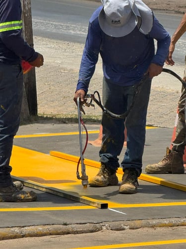 Pintura de faixas, setas e vagas para organização do trânsito.