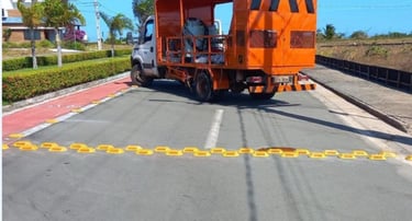 Fornecemos quebra-molas de tachão, borracha e concreto.